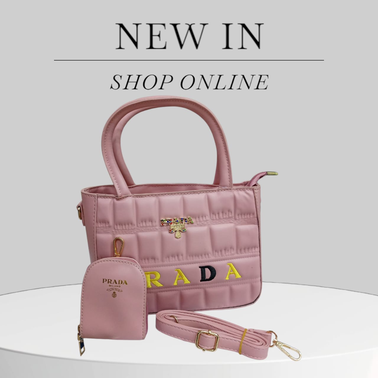 Prada Milano bags are known for their luxury and craftsmanship. The image shows a quilted pink handbag set that appears to be a replica or inspired by a Prada design, based on the PRADA MILANO text on the bag and the pouch. Searches for similar bags show many results for "Prada style" or "Prada replica" bags on various online marketplaces.